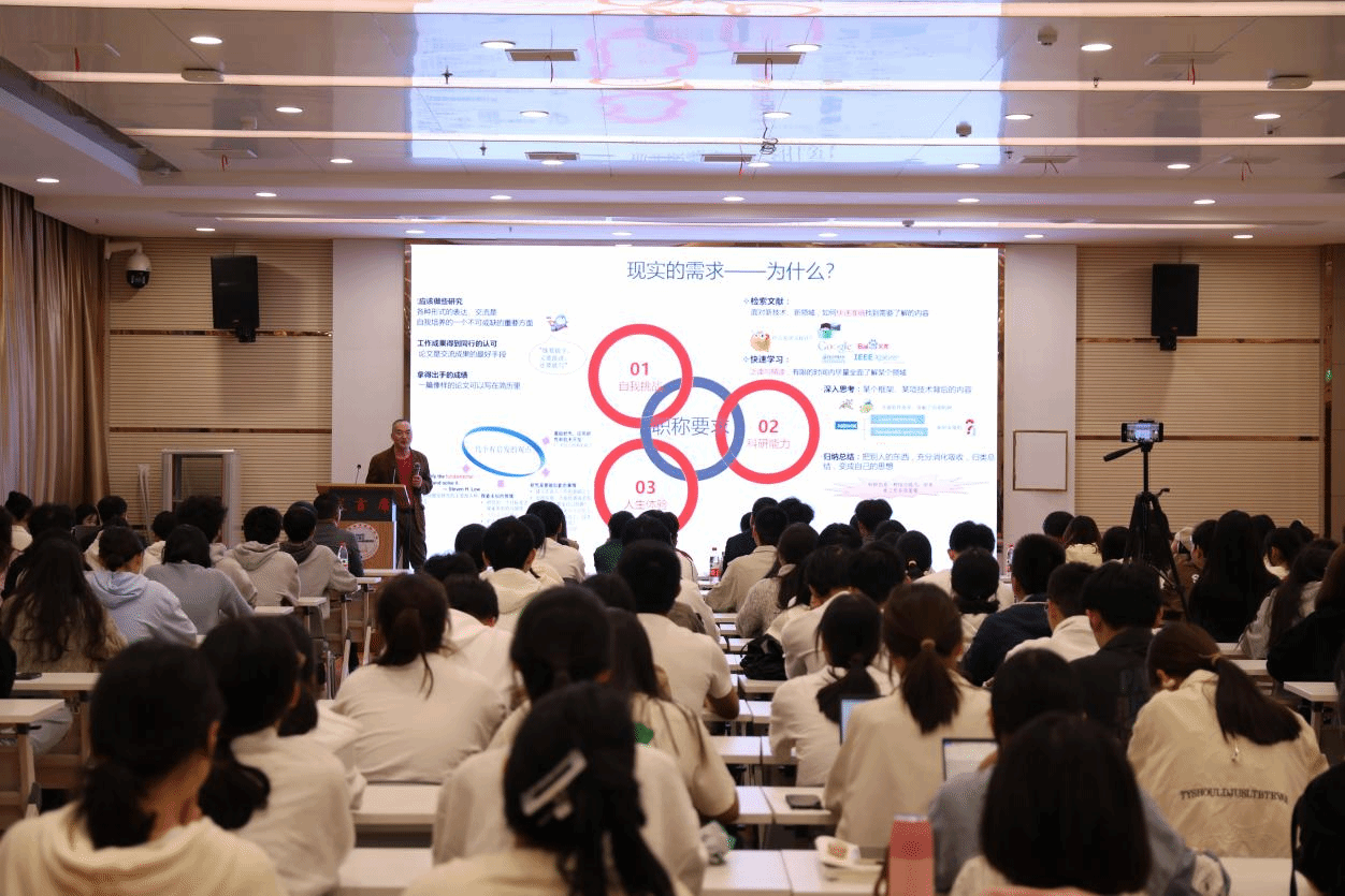 “教师不仅是职业,更是理想与热爱。”贵州大学教授、博士生导师邹赛从个人成长、科研认识等出发,聚焦“科研育人”“科研规划”“科研发展”“科研态度”四个方面,理论联系实际,运用丰富、生动的课题研究案例,深入浅出地指导同学如何在本科阶段进行科研课题研究,并激励师范生加强科创能力培养,为未来的教学和科研工作打下坚实的基础。