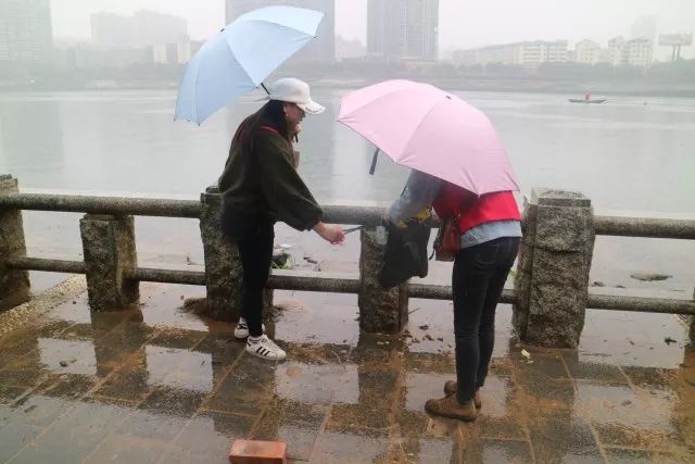 淅淅沥沥的小雨并没有将人行道冲刷干净,相反,雨水让不少垃圾黏在地上,显的更加丑陋。在这样轻松愉快的氛围中,志愿者们很快的将湘江边部分路段的垃圾捡的干干净净,让人行道变得焕然一新。