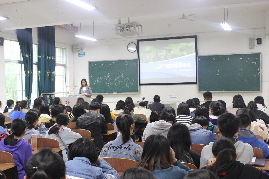 2019年4月29日中午12点50分,公司在计科楼209室举办2019届毕业生考研交流报告会,莅临本次报告会的领导有公司党总支书记陈洪清、党总支副书记彭正以及辅导员谢媛,本次报告会由夏娇娇主持。