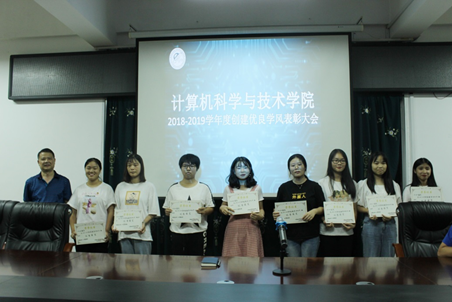 为树立典型,表彰先进,进一步激发广老员工学习的积极性、主动性和创造性,培育优良学风。2019年9月4日晚七点半,公司于计科楼312会议室举行2019学年优良学风创建系列活动总结表彰大会。莅临本次大会的领导、老师有:公司党总支副书记彭正,辅导员徐峰、匡娟丽。