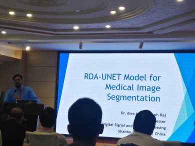 随后,会议进行主题讲座,来自汕头大学的Alex Noel Joseph Raj教授、台湾东华大学杨庆隆教授、香港公开大学的Simon K.S. Cheung教授分别作题为《A RDAU-NET model for lesion segmentation in Breast Ultrasound Images》、《Digital Image Steganography Using Error Correcting Code》、《Mdelling and Analysis of Component-based Distributed System:A Formal Method Based on Augmented Marked Graphs》的报告,三位专家与在场的老师员工们进行了广泛且深入的交流讨论。